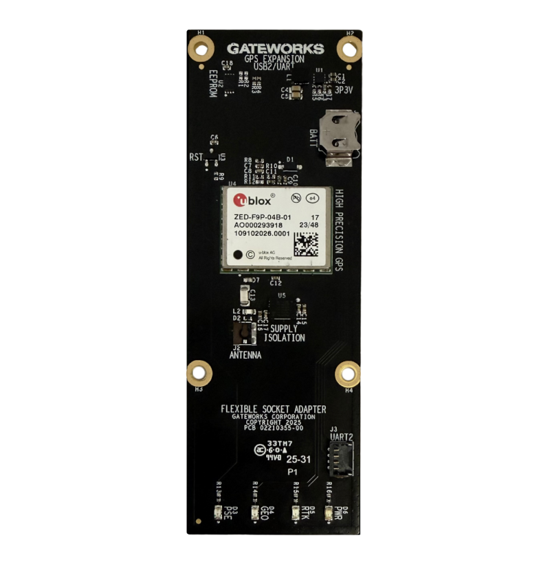 The GW16FQ1 High-Precision GNSS Flexible Socket Adapter (FSA) integrates the proven u-blox ZED-F9P platform to deliver centimeter-level positioning for embedded and industrial systems. Designed for Gateworks VeniceFLEX and Catalina single board computers, the module enables high-accuracy navigation, timing, and asset tracking without requiring external GNSS hardware integration.